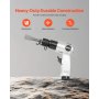 Der VEVOR Druckluft Meißelhammer bietet eine starke Schlagkraft mit 4500 BPM Hochfrequenzschlägen und einem Hub von 3,9 cm. Er eignet sich ideal zum Schneiden von Metall, Aufbrechen von Betonwänden, Meißeln von Böden und Entfernen von Schrauben. Er verfügt über einen Luftnadelentroster zur Rostentfernung, 4 Meißel, eine Ein-Knopf-Startfunktion und einen ergonomischen Griff.
