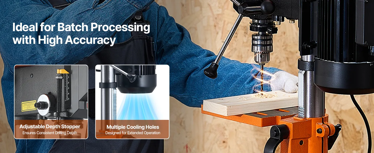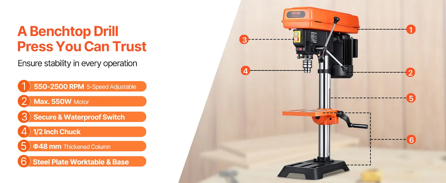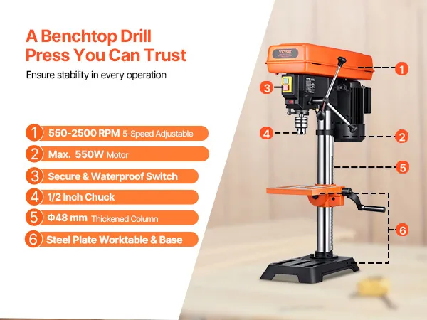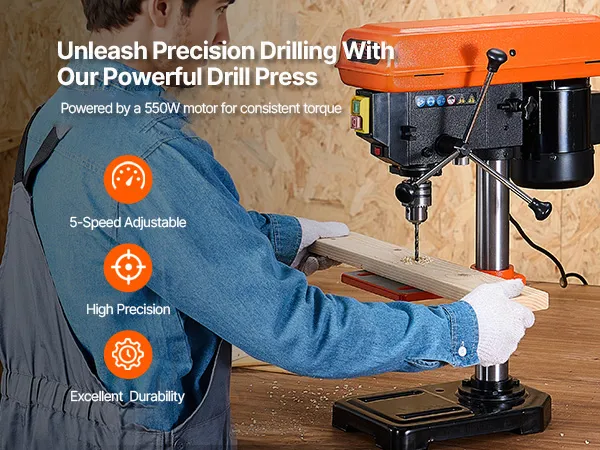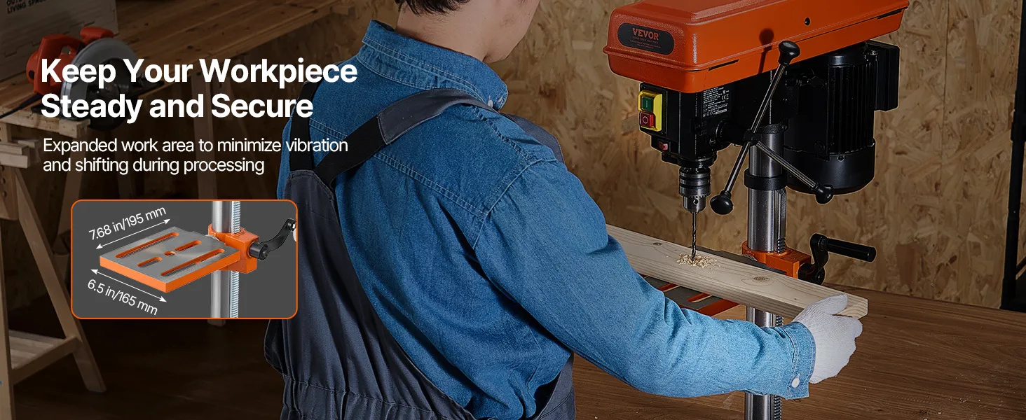 Außergewöhnliche Bohrleistung: Angetrieben von einem robusten 550-W-Induktionsmotor bietet diese Tischbohrmaschine überlegene Leistung und Stabilität und gewährleistet auch bei längeren Bohrsitzungen eine erstklassige Leistung.