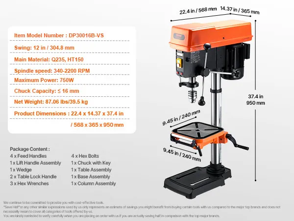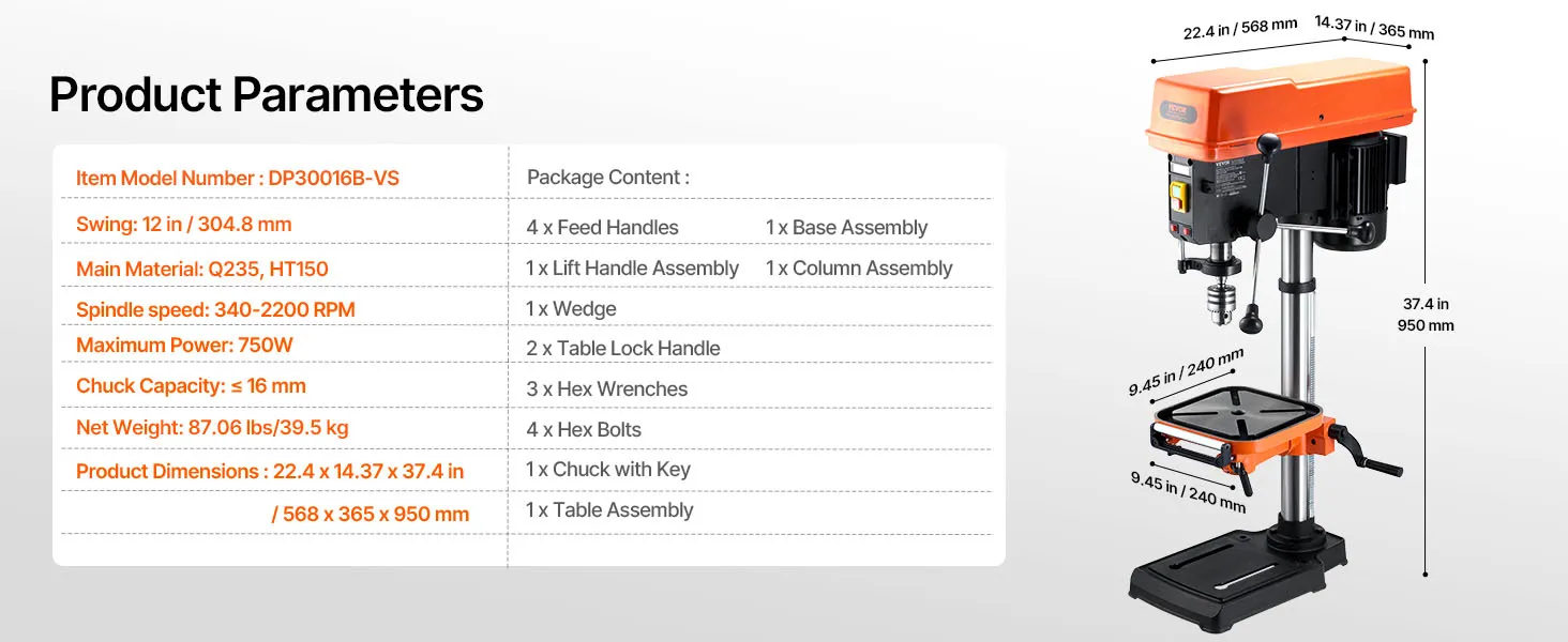 12 Zoll (304,8 mm) Tischbohrmaschine, heben Sie Ihre Heimwerkerprojekte auf ein neues Niveau