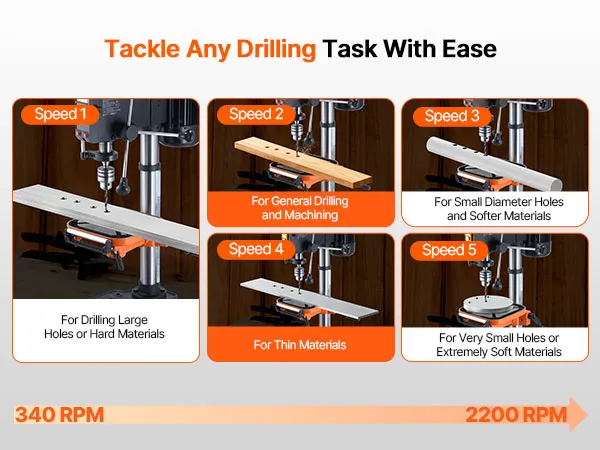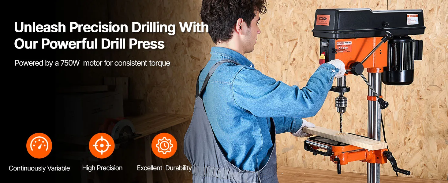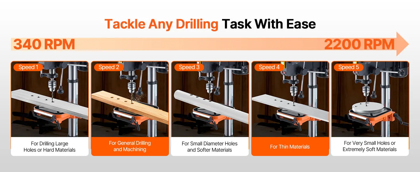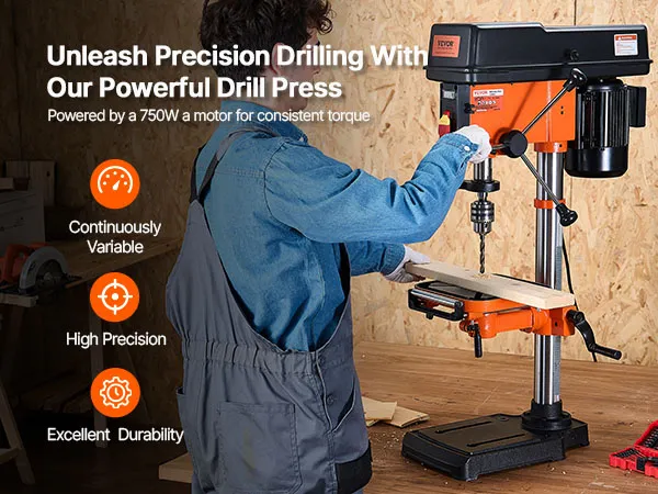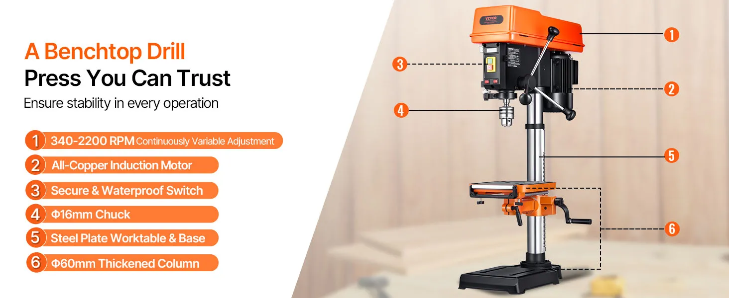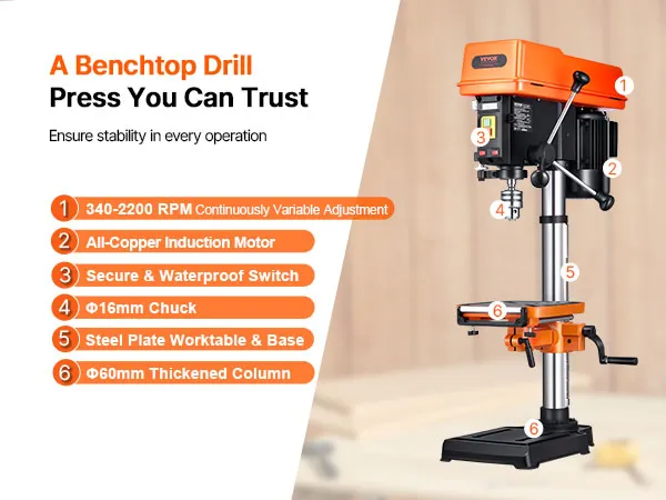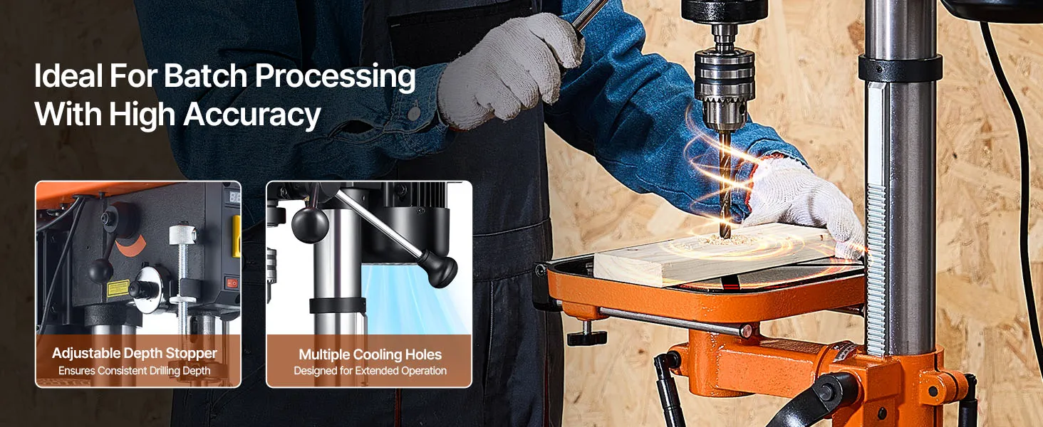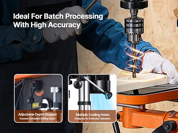 Außergewöhnliche Bohrleistung: Ausgestattet mit einem leistungsstarken Induktionsmotor mit bis zu 750 W Leistung sorgt diese Tischbohrmaschine für verbesserte Leistung und Stabilität bei längerem Einsatz. Genießen Sie konstante Leistung auch bei längerem Gebrauch.