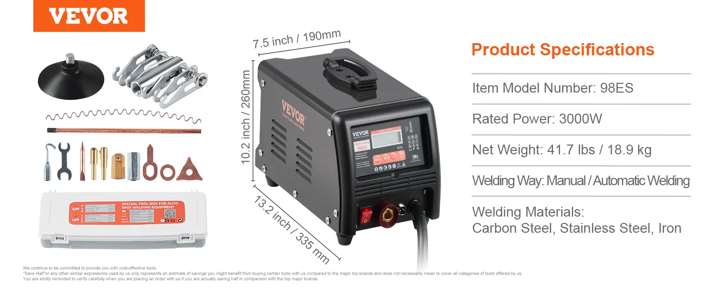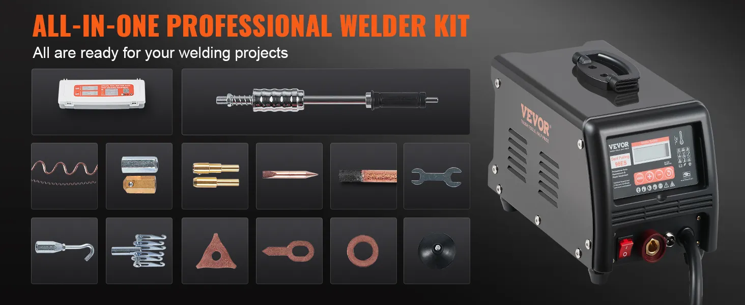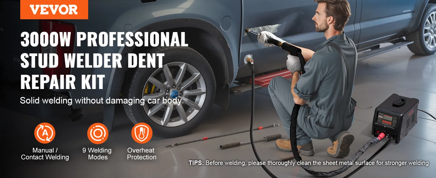 Professionelle Dellenentfernung: Der VEVOR Stud Welder Dent Puller bietet eine schnelle und effiziente Lösung zum Entfernen von Dellen aus Stahlkarosserieteilen und sorgt gleichzeitig für präzises Dellenziehen und kontrollierte Kraft für eine Dellenreparatur auf professionellem Niveau, jedes Mal.