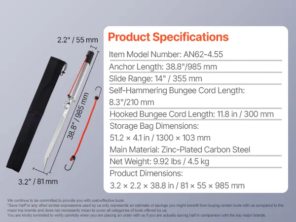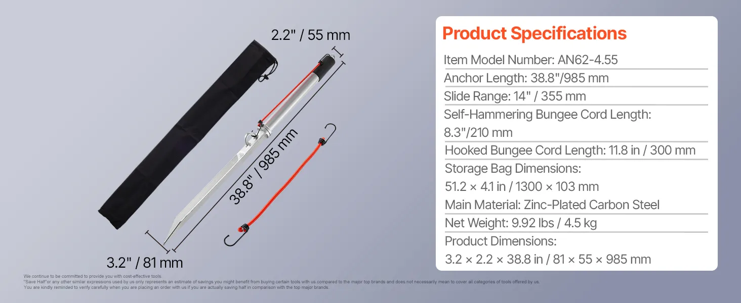 Fester Halt: Dieser Strandspieß hat ein extra langes Design für starken, sicheren Halt. Mit einem Gewicht von 9,9 lbs (4,5 kg) gräbt er sich tief in Sandbänke oder Flussufer. Das selbsthämmernde Bungee-Seil sorgt für zusätzliche Elastizität und verhindert ein Abrutschen des Griffs