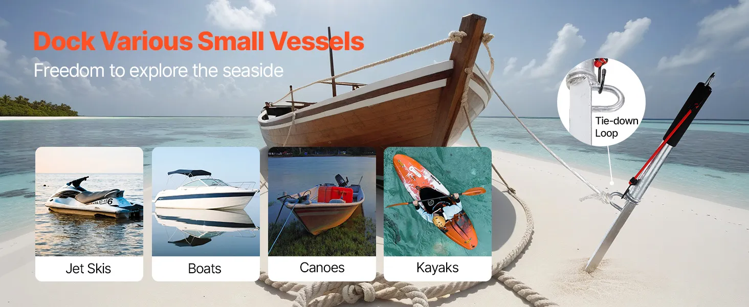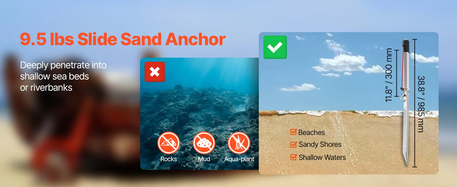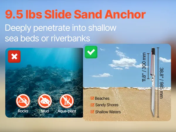 Schnelles Ankern: Unser Sandspike-Bootsanker dringt schnell in weichen und harten Sand ein. Einfach einschlagen und er dringt tief in den Strand oder die Küste ein und bietet einen zuverlässigen, praktischen Befestigungspunkt für kleine Boote, Jetskis, Schlauchboote und Schwimmstege