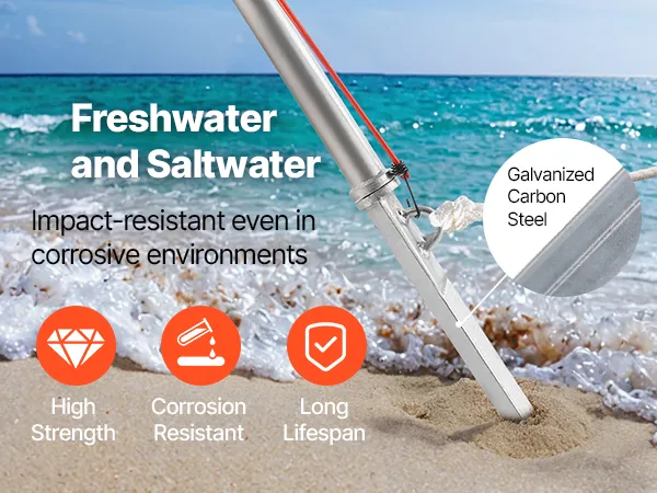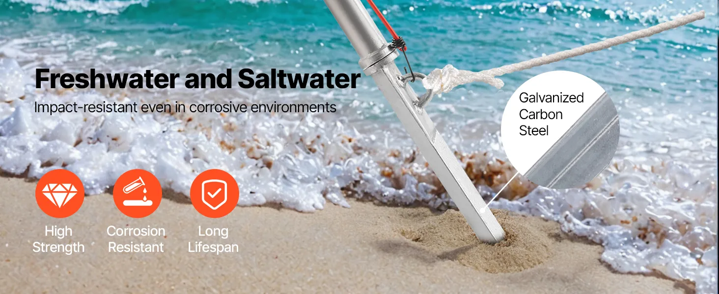 Unser verzinkter Küstenspieß aus Kohlenstoffstahl ist robust und langlebig, sodass Sie sich keine Sorgen machen müssen, dass er in Salzwasserumgebungen rostet.