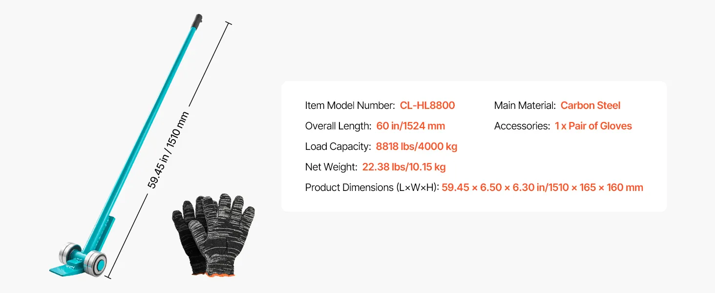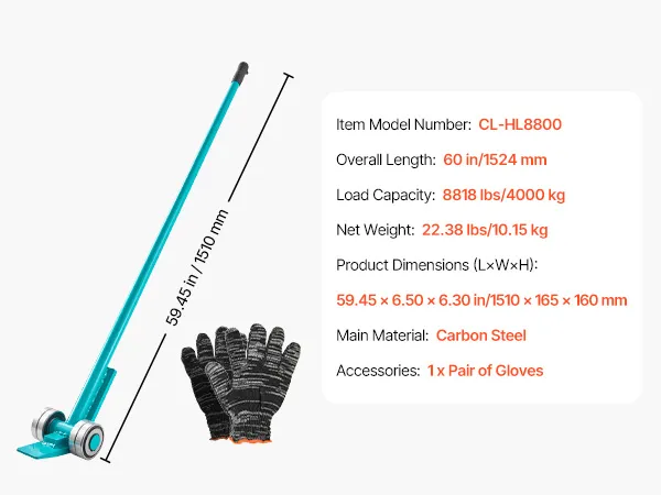 VEVOR Lastenheber 4000 kg Tragkraft, Möbelheber 1524 mm Gesamtlänge, mit Handschuhen,Transporthilfe mit Stahlfelgen für schwere Möbel, Gegenstände & Betonblöcke, ideal für Umzug & Schwerlasttransport