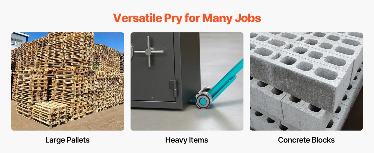 Für schwere Aufgaben geeignet: Von großen Paletten über sperrige Lasten bis hin zu Betonblöcken – dieses rollbare Brecheisen bietet Ihnen eine sichere Kontrolle für eine Vielzahl anspruchsvoller Hebevorgänge