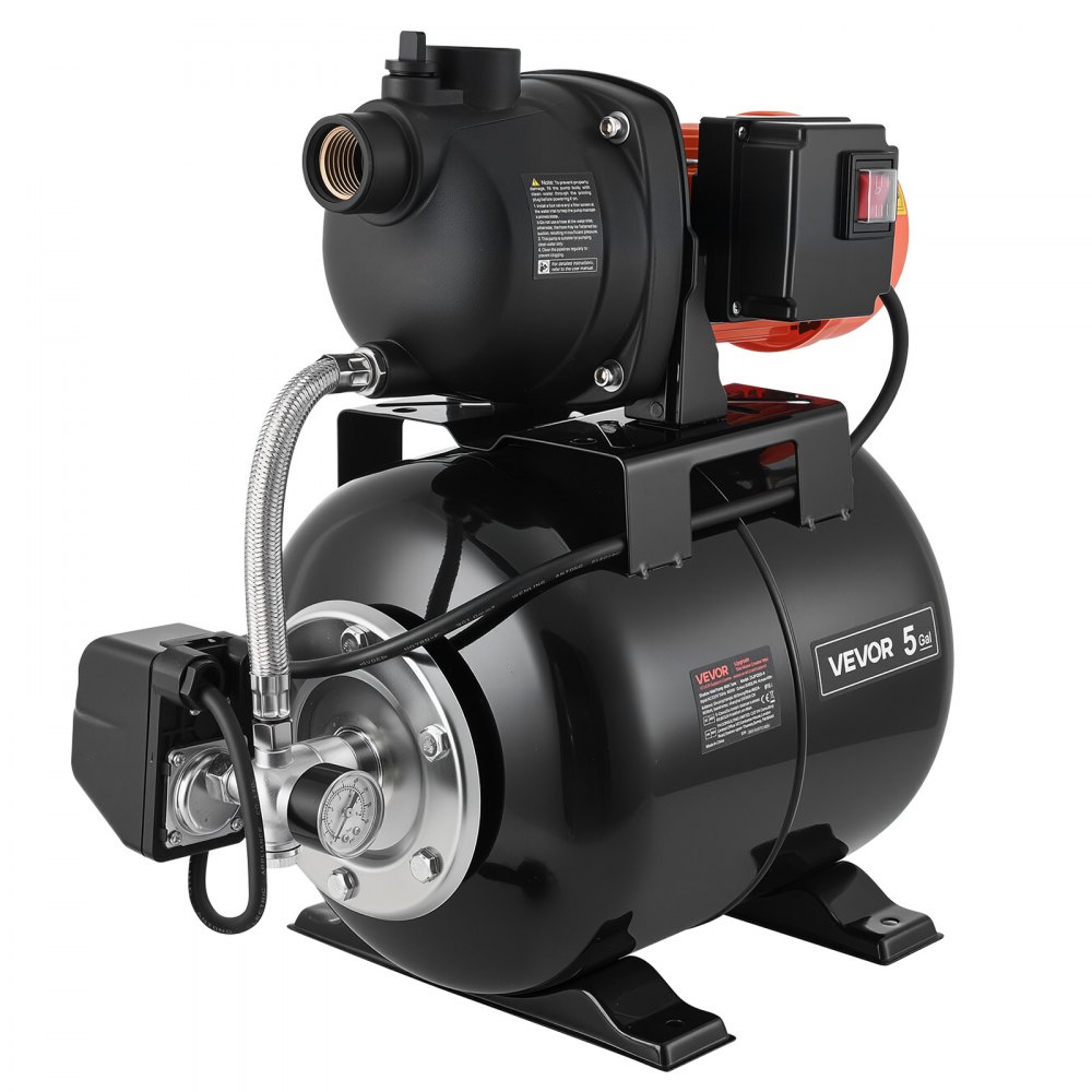 • Powerful Performance: This shallow well pump with tank delivers up to 1320 GPH / 5000 LPH and 164 ft / 49 m max head, easily handling large-scale garden irrigation and lawn watering while providing ample pressure-boosted water supply for residential use