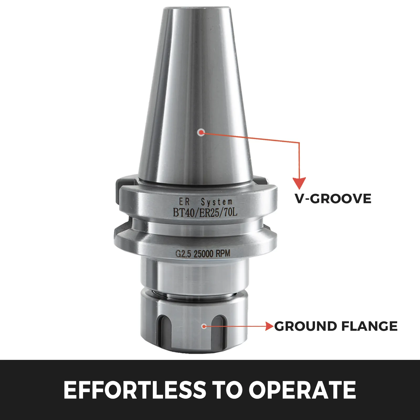 【MÜHELOSE BEDIENUNG】- 3 Stück BT40 ER25 präzisize Spannzangenfutter. Selbstspannende Funktion ohne Schlüssel. Die V-förmige Nut erleichtern den Werkzeugwechsler und reduzieren die Wartung von Spindel und Wechsler.
