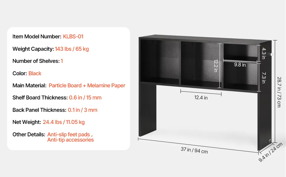 VEVOR Schreibtisch Bücherregal 1-stufiger Organizer (94 x 24 x 73 cm) Tischregale Schreibtisch Organizer Ausstellungsregal aus Spanplatten mit rutschfesten Füßen, für Büro Wohnheim, Schwarz