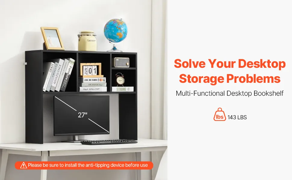 Große Kapazität: Dieses Schreibtisch-Bücherregal misst 37,0 x 9,4 x 28,7 Zoll (94 x 24 x 73 cm). Verabschieden Sie sich von überfüllten Schreibtischen mit unserem Schreibtisch-Bücherregal. Es wurde speziell für Computertische entwickelt, bietet Platz für einen 27-Zoll-Monitor (68,58 cm) und verfügt über Fächer zum Ordnen von Büchern, Büromaterial und mehr, wodurch eine aufgeräumte Arbeitsumgebung geschaffen und die Produktivität gesteigert wird