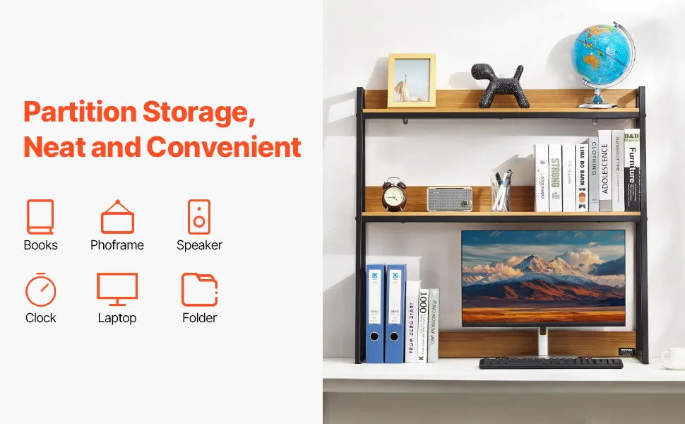 Ausgestattet mit mehreren Fächern zum Ordnen von Büchern, Büromaterial und mehr trägt dieser Schreibtischaufsatz dazu bei, einen aufgeräumten Arbeitsplatz zu schaffen und die Produktivität zu steigern.
