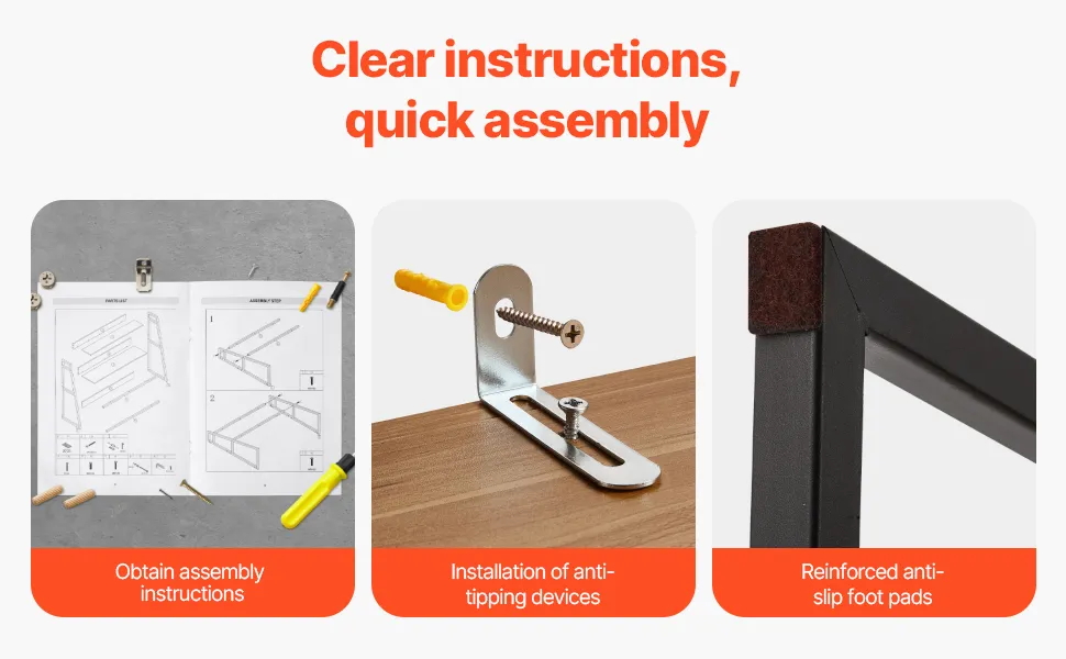 In der Bedienungsanleitung finden Sie eine ausführliche Montageanleitung, mit der Sie diesen Schreibtischschrank schnell und einfach zusammenbauen können.