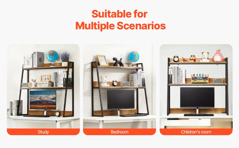 Robust und langlebig: Unser Schreibtischaufsatz zeichnet sich durch hohe Tragfähigkeit und Stabilität aus. Die Regale aus 0,5 Zoll (12 mm) dicker Spanplatte können bis zu 66 lbs (30 kg) tragen und bieten starken Halt für alle Arten von Büchern. Die glatte Oberfläche ist wasserdicht, kratzfest und leicht zu reinigen, was sie ideal für geschäftige Lern- oder Arbeitsumgebungen macht