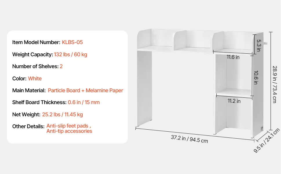VEVOR Schreibtisch Bücherregal 2-stufiger Organizer (94,5 x 24,1 x 73,4 cm) Tischregale Schreibtisch Organizer Ausstellungsregal aus Spanplatten mit rutschfesten Füßen, für Büro Wohnheim, Weiß
