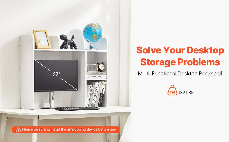 Mit unserem Schreibtisch-Bücherregal ist Schluss mit Unordnung. Die 15 mm dicken Regale tragen bis zu 60 kg und sind ideal für Bücher, Fotos, Kopfhörer und Dekorationen. Sie können damit Büroakten, Bücher und mehr zu Hause oder bei der Arbeit organisieren.