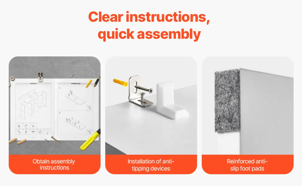 Eine ausführliche Montageanleitung finden Sie in der Gebrauchsanweisung, sodass Sie diesen Schreibtischschrank schnell und einfach zusammenbauen können.