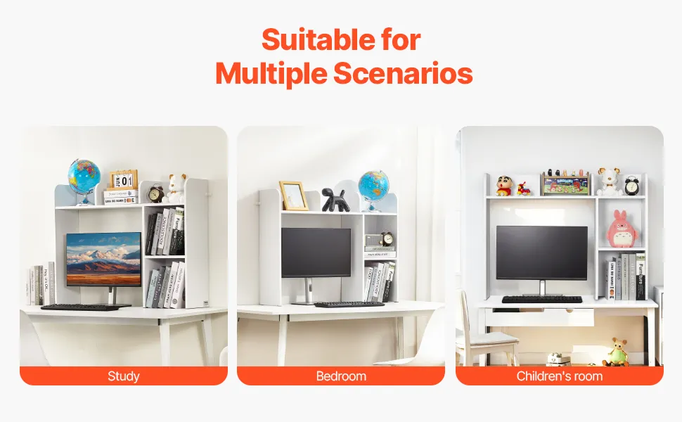 Robust & langlebig: Unser Schreibtischaufsatz zeichnet sich durch hohe Tragfähigkeit und Stabilität aus. Die Regale aus 0,6 Zoll (15 mm) dicker Spanplatte können bis zu 132 lbs (60 kg) tragen und bieten starken Halt für alle Arten von Büchern. Die glatte Oberfläche ist wasserdicht, kratzfest und leicht zu reinigen, was sie ideal für geschäftige Lern- oder Arbeitsumgebungen macht