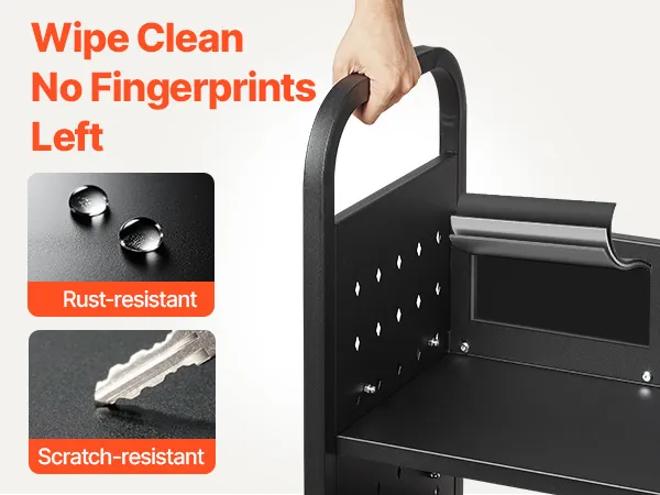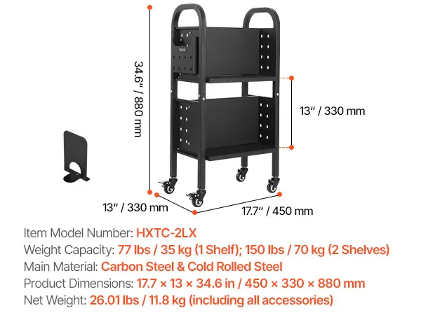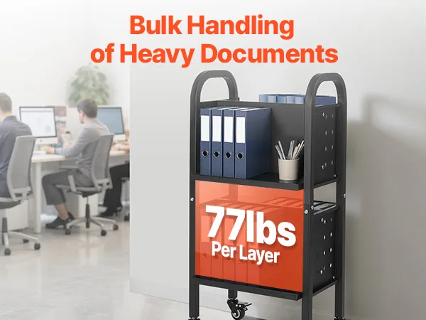 Stabilität und Tragkraft: Der Bibliothekswagen besteht aus hochfestem Kohlenstoffstahl und trägt pro Etage 35 kg (77 lb), was einer Gesamttragkraft von 70 kg (150 lb) entspricht. Die rostfreie Beschichtung sorgt für optimale Haltbarkeit.