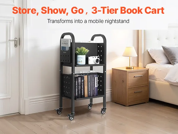 Leise Bewegung: Die leisen TPR-Lenkrollen gleiten sanft, zwei davon verfügen über ein Feststellsystem. Bewegen Sie den rollenden Bücherwagen mühelos auf Hartholz- oder Fliesenböden, ohne jemanden zu stören.