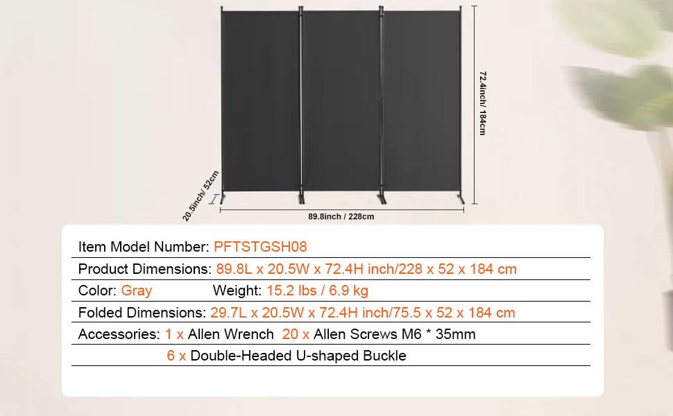 Flexibles und faltbares Design: Es verfügt über eine geöffnete Größe von 89,8 x 72,4 x 20,5 Zoll (228 x 184 x 52 cm) (L x B x H). Sie können die Höhe jedes Paneel-Verbindungsclips anpassen und es gibt flexible Paneel-Kombinationsoptionen, um die Wandgröße anzupassen. Im zusammengeklappten Zustand misst es 29,7 x 72,4 x 20,5 Zoll (75,5 x 184 x 52 cm) (L x B x H) und nimmt bei platzsparender Lagerung weniger als 1 Quadratmeter ein.