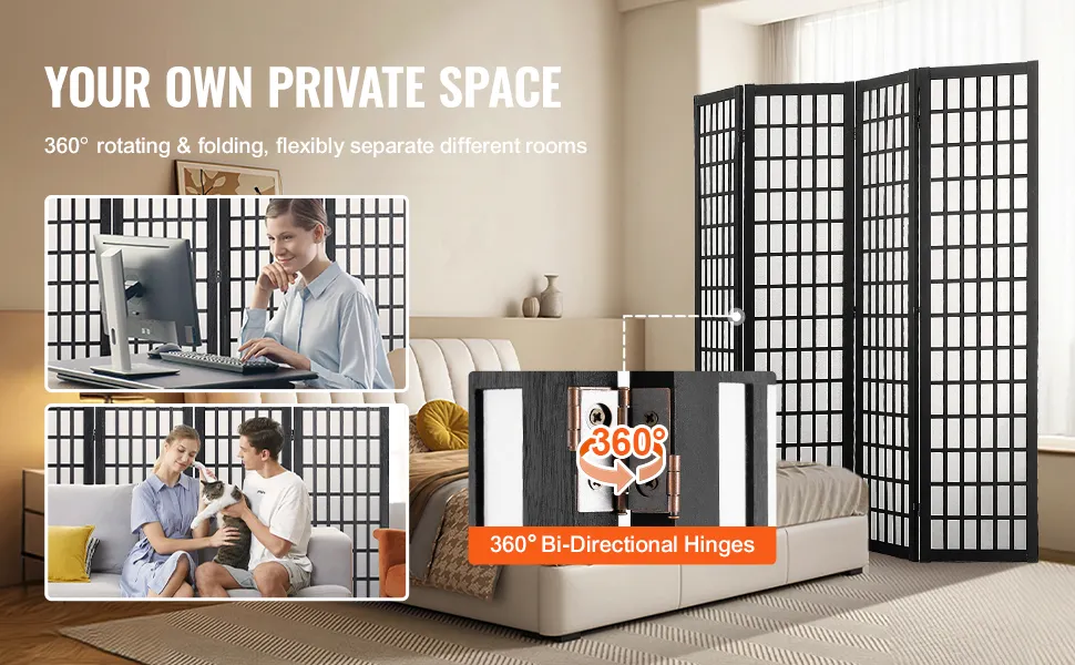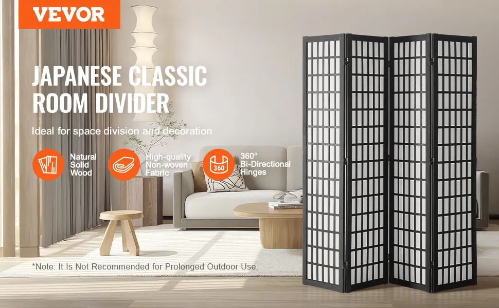VEOVR stilvoller japanischer Raumteiler mit 4 Paneelen