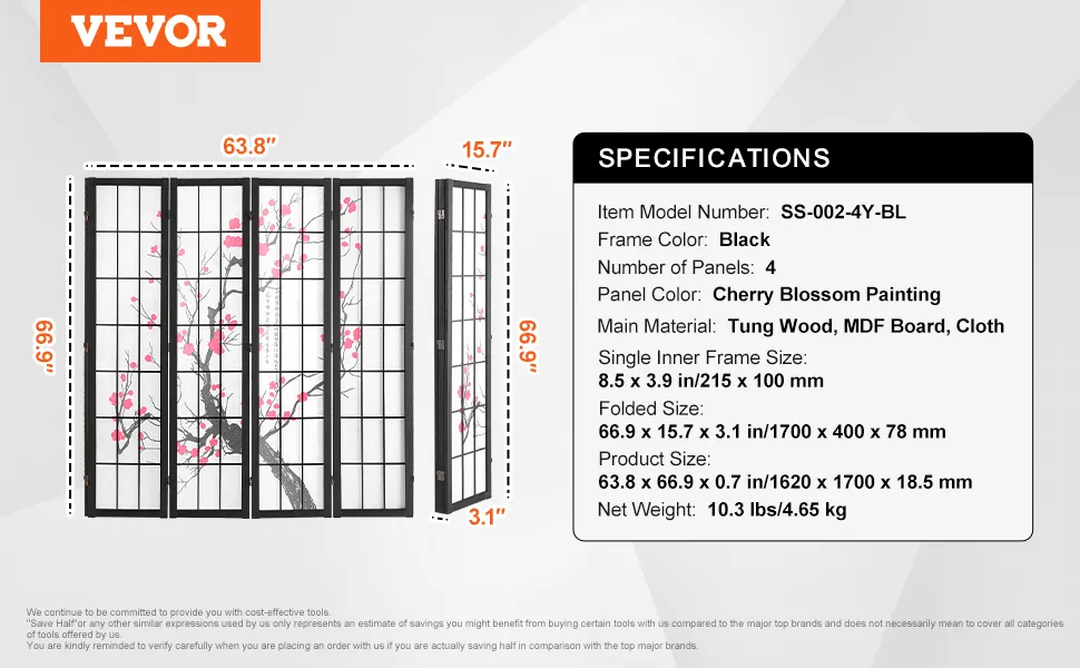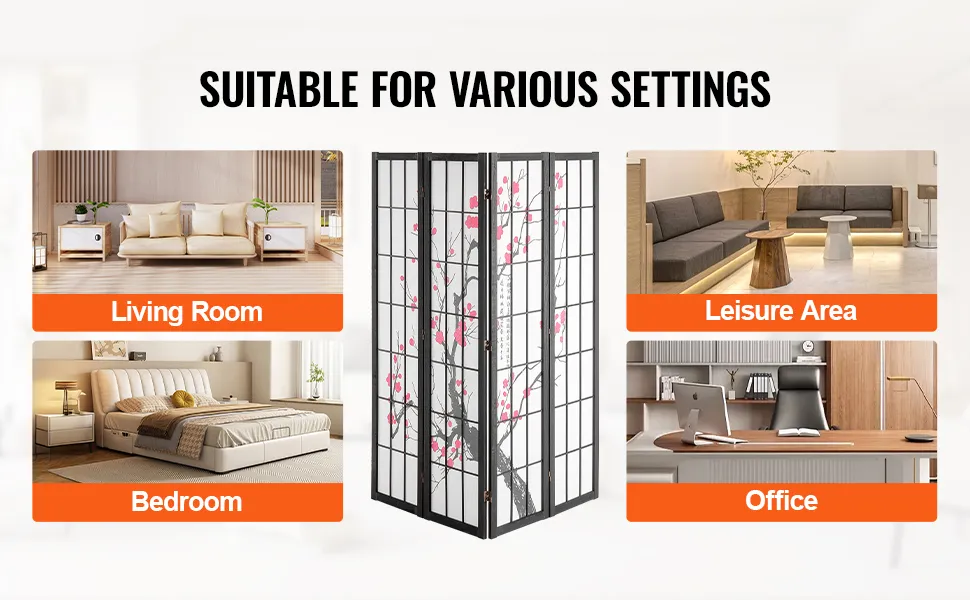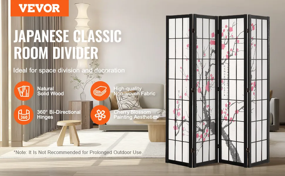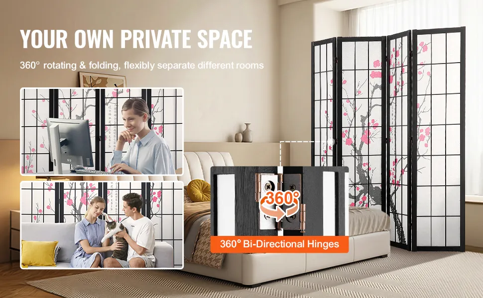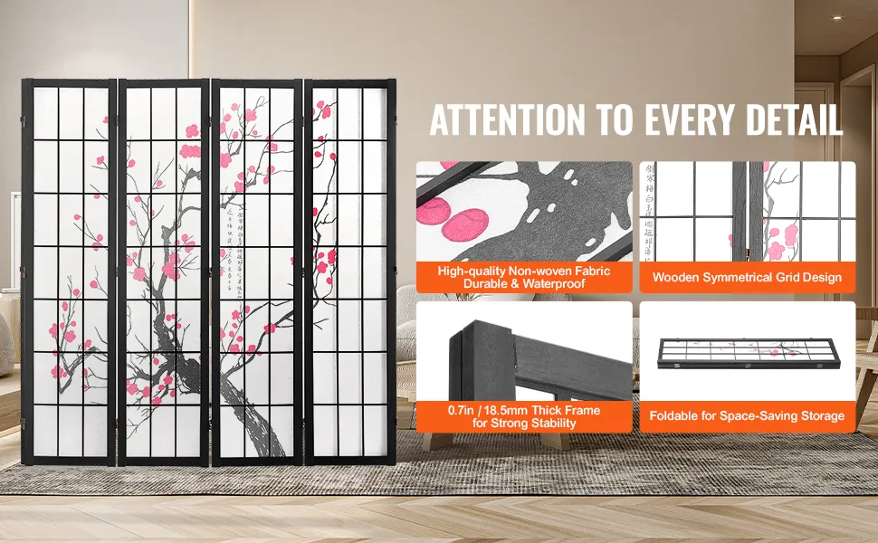 VEVOR Stilvoller japanischer Raumteiler mit 4 Paneelen