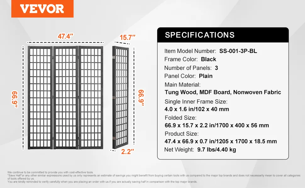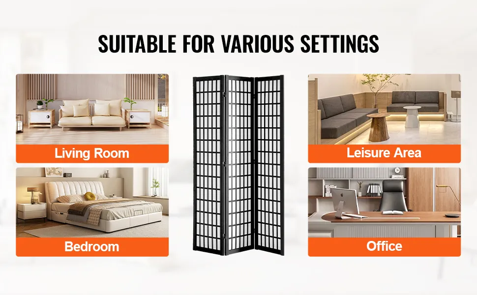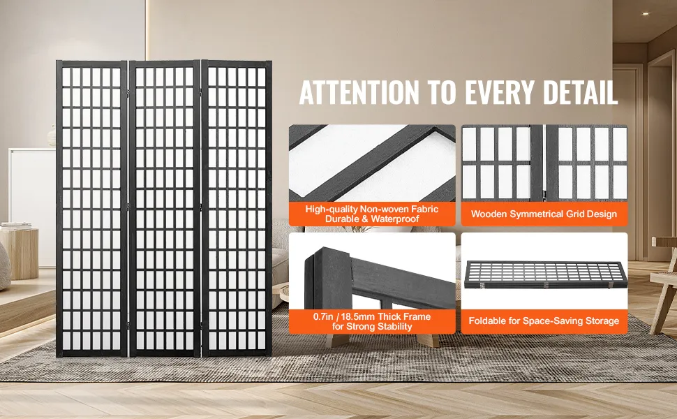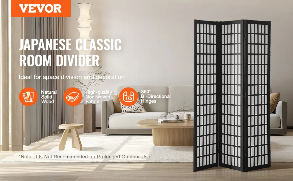 Japanischer Minimalismus: Der VEVOR-Raumteiler wertet Ihren Raum auf, und dieser 47,4-Zoll-Raumteiler (1205 mm) im japanischen Stil ist mit drei eleganten Paneelen gestaltet, die viel Privatsphäre bieten. Sein schlankes, symmetrisches Holzgitter ist die ideale Mischung aus Funktionalität und Stil und verleiht Ihrem Zuhause einen Hauch klassischen japanischen Charmes, während Sie bequem wohnen können.