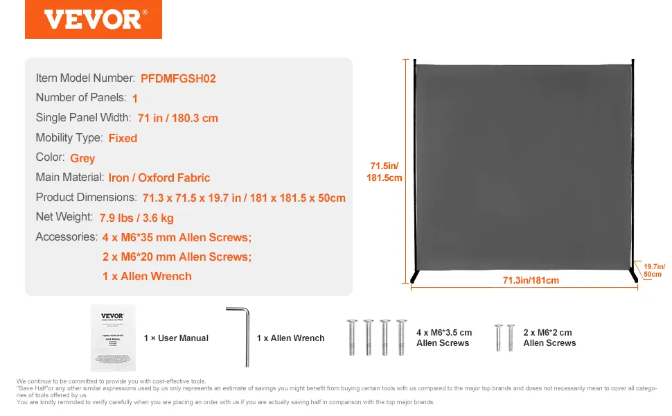 Leicht zu bewegen: Der Sichtschutz misst 71,3 x 71,5 x 19,7 Zoll (1810 x 1815 x 500 mm) und wiegt 7,9 lbs (3,6 kg). Er ist leicht und lässt sich einfach überallhin mitnehmen.