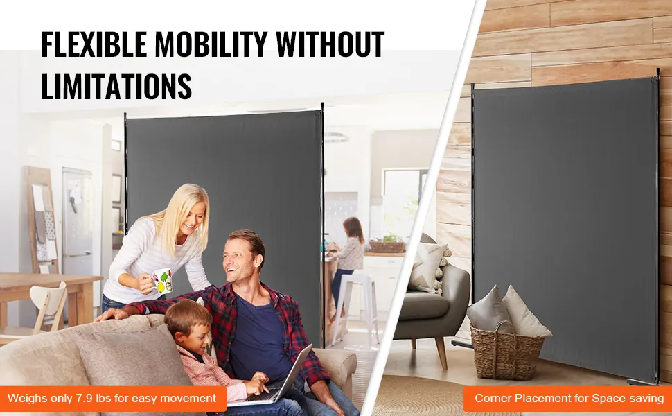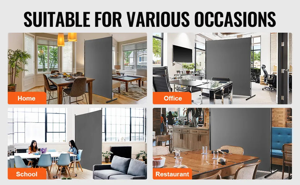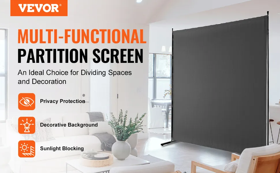 VEVOR Raumteiler Einzelpaneel Paravent Trennwand Stellwand, 1,8 m Sichtschutz für den Innenbereich, Trennwand zur Raumtrennung, freistehendes Raumteiler für Büro Schlafzimmer Grau