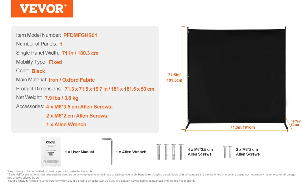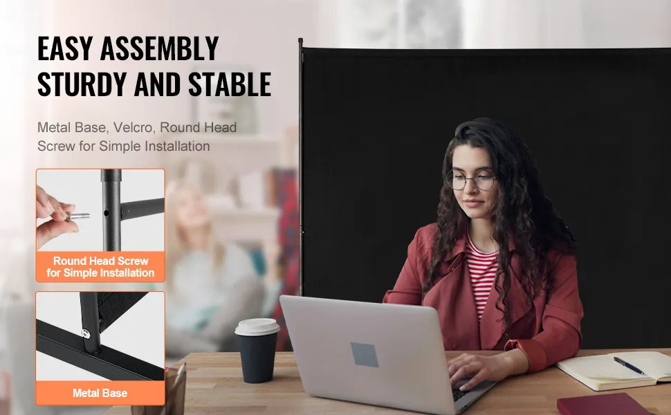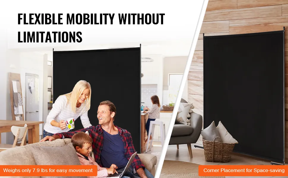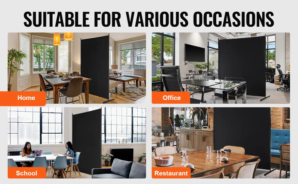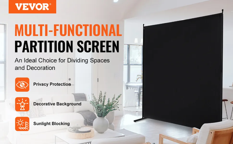 VEVOR Raumteiler Einzelpaneel Paravent Trennwand Stellwand, 1,8 m Sichtschutz für den Innenbereich, Trennwand zur Raumtrennung, freistehendes Raumteiler für Büro Schlafzimmer Schwarz