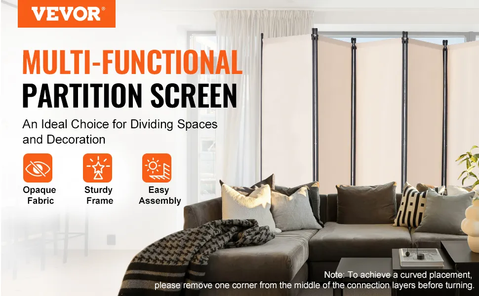 Einfache Montage und Lagerung: Mit allem notwendigen Zubehör und einer klaren Montageanleitung ist der Raumteiler in etwa 15 Minuten einfach aufzubauen – für den Vorgang werden zwei Personen empfohlen. Für Stabilität während des Gebrauchs empfehlen wir, die W-förmigen Abschnitte leicht zusammenzufalten. Wenn Sie ihn nicht verwenden, falten Sie ihn einfach zusammen und lagern Sie ihn platzsparend in einer Ecke.