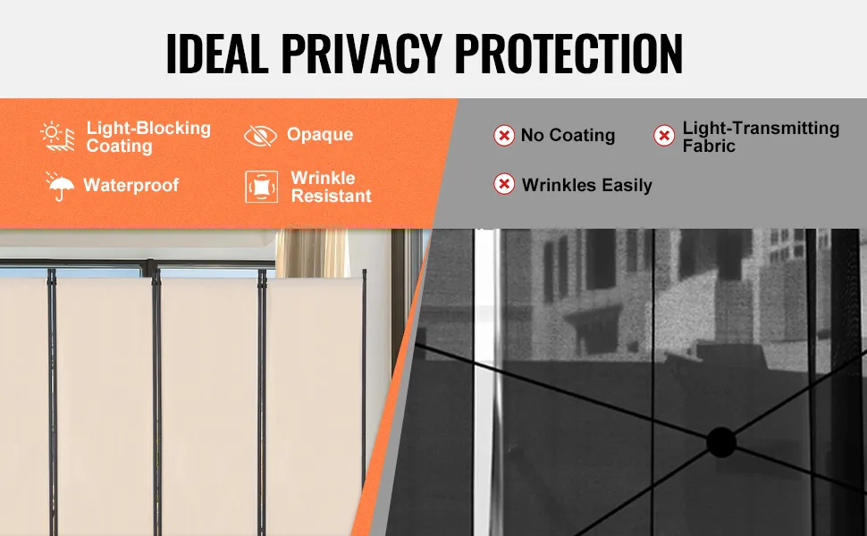 Einfach zu verstauen: Der Sichtschutz misst 3110 x 1805 x 450 mm (122,4 x 71,1 x 17,7 Zoll), jedes Paneel misst 22 x 71,1 Zoll (558,8 x 1805 mm). Er ist faltbar, sodass Sie ihn problemlos an jeden beliebigen Ort mitnehmen können.