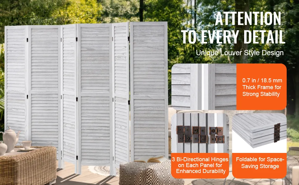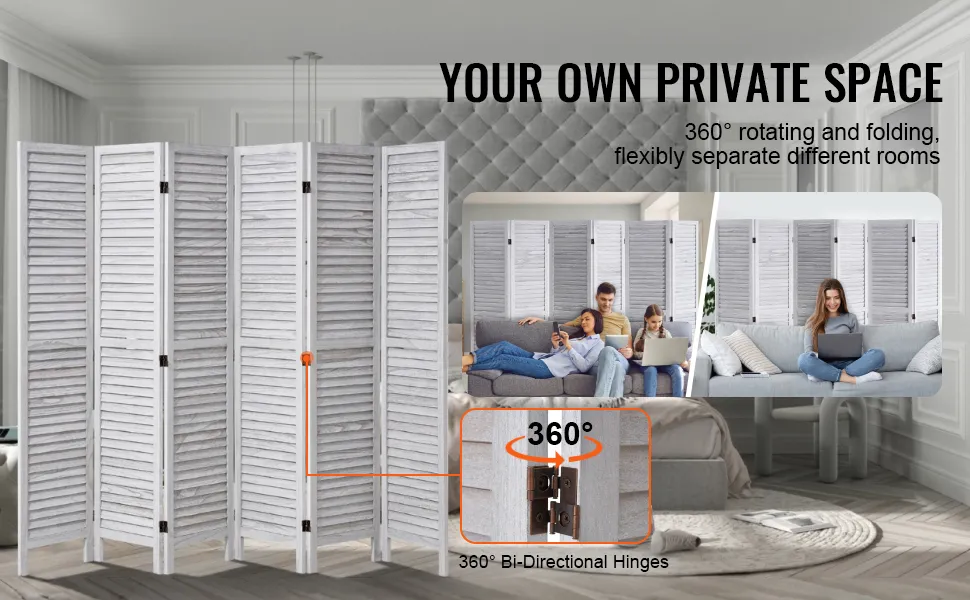 Europäisches klassisches Design: Dieser rustikale Raumteiler mit 95,3 Zoll (242 cm) Durchmesser kombiniert sechs elegante Paneele im europäischen Stil und bietet ausreichend Privatsphäre für jeden Raum. Sein schlankes Lamellendesign dient sowohl als stilvoller Sichtschutz als auch als dekoratives Element und verbessert mühelos die Ästhetik Ihres Zuhauses.