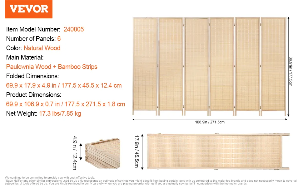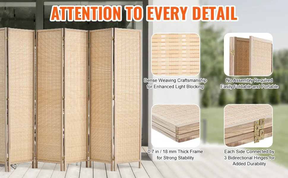 Klassisch gewebter Raumteiler: Dieser Raumteiler besteht aus 6 Paneelen im modernen Stil und bietet viel Privatsphäre für Ihren Raum. Er ist aus Bambusstreifen handgewebt und zeichnet sich durch klare, klare Linien aus. Damit ist er eine perfekte Mischung aus Sichtschutz und dekorativem Element und verleiht Ihrem Zuhause einen Hauch von natürlichem, entspanntem Komfort.