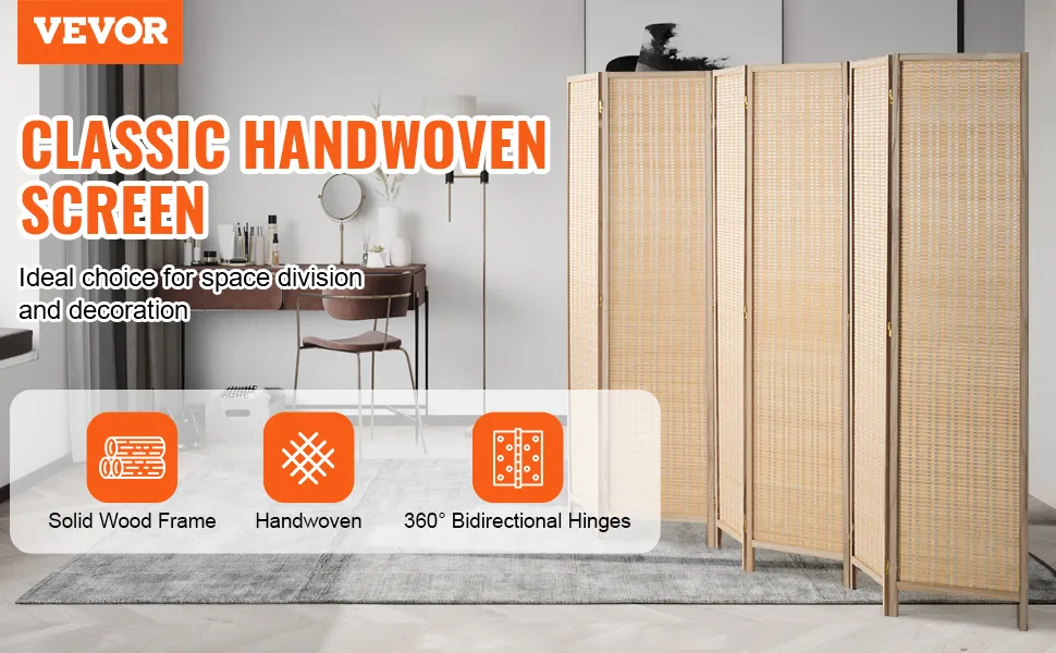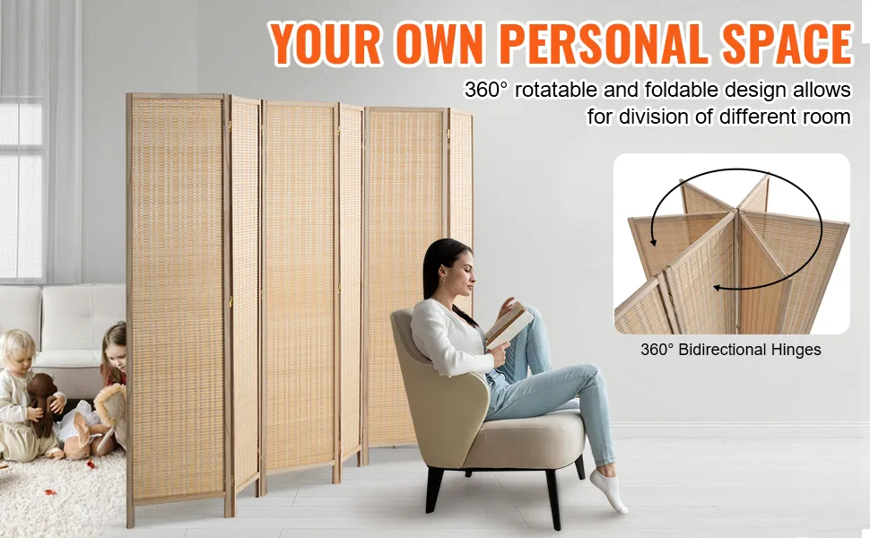 Gewebter Raumteiler mit 6 Paneelen – Privatsphäre und Stil in jeder Falte!