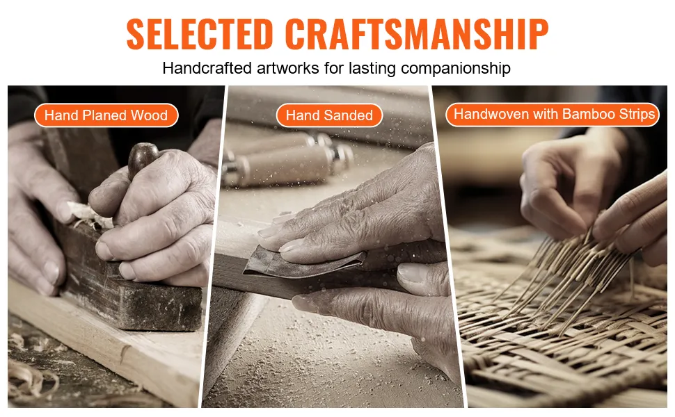 Für den Rahmen verwenden wir hochwertiges Paulownia-Holz, das gegen Verformung und Rissbildung resistent ist. Das einzigartige handgeflochtene Design verleiht Eleganz und Stabilität und schafft eine raffinierte und dauerhafte Struktur.