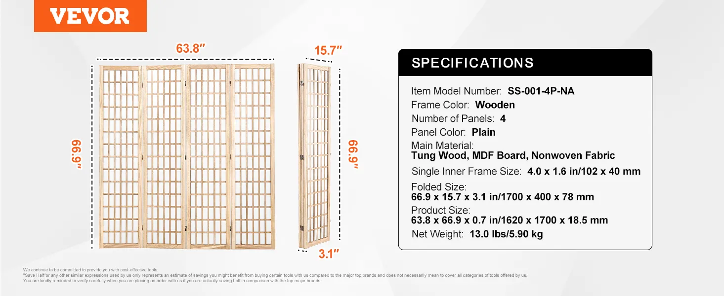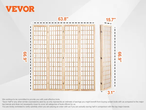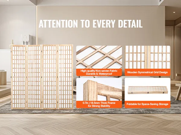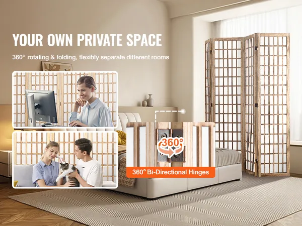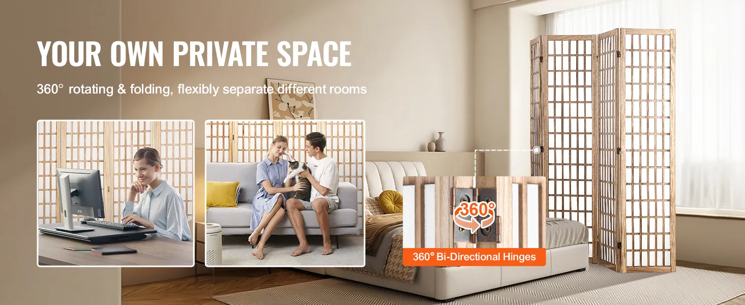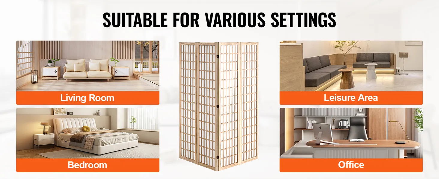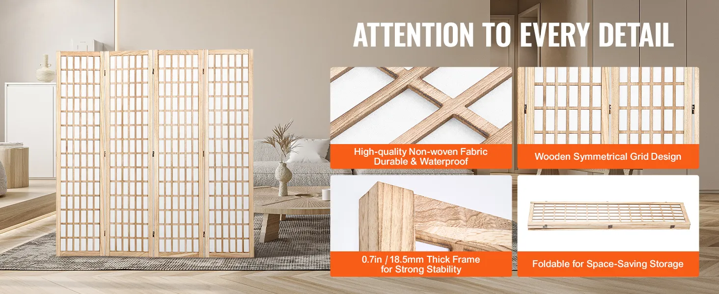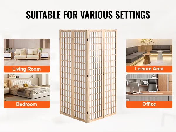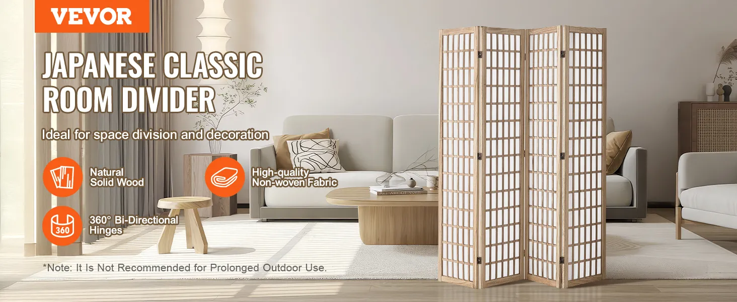 VEOVR Stilvoller japanischer Raumteiler mit 4 Paneelen