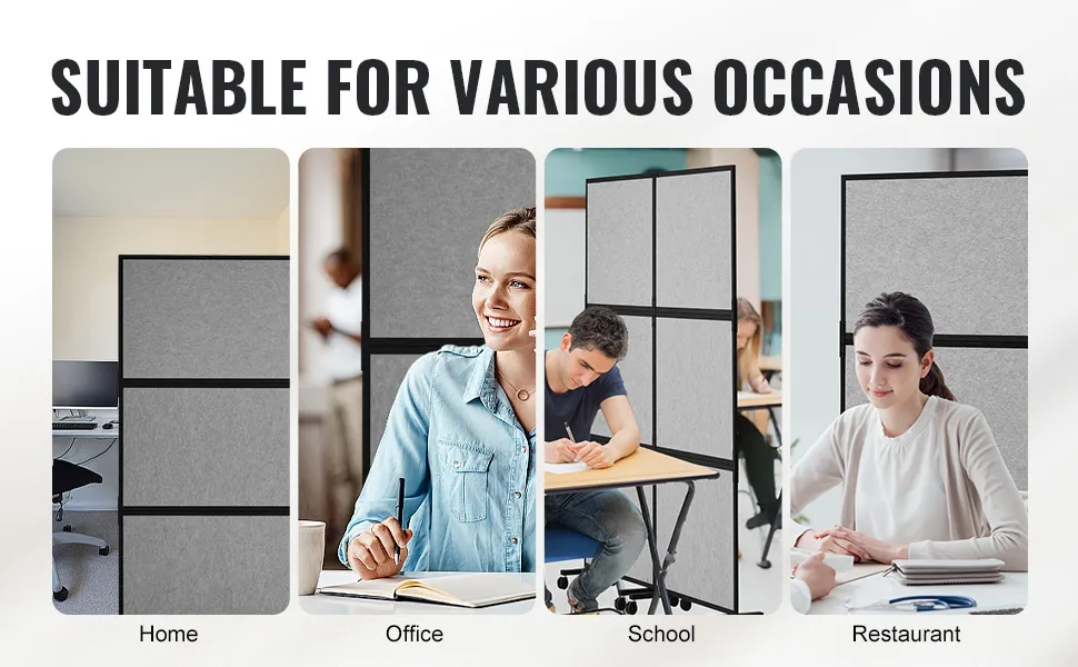 Diese tragbare Trennwand eignet sich perfekt zum Unterteilen von Räumen in Büros, Wohnzimmern, Schulen, Restaurants usw. Sie kann auch als Hintergrund für Telefonkonferenzen, Live-Streaming oder Videokonferenzen verwendet werden und dient als vielseitiger akustischer Raumteiler.