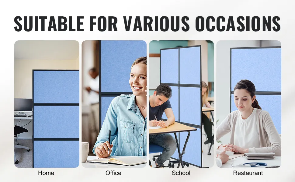Diese tragbare Trennwand eignet sich perfekt zum Unterteilen von Räumen in Büros, Wohnzimmern, Schulen, Restaurants usw. Sie kann auch als Hintergrund für Telefonkonferenzen, Live-Streaming oder Videokonferenzen verwendet werden und dient als vielseitiger akustischer Raumteiler.