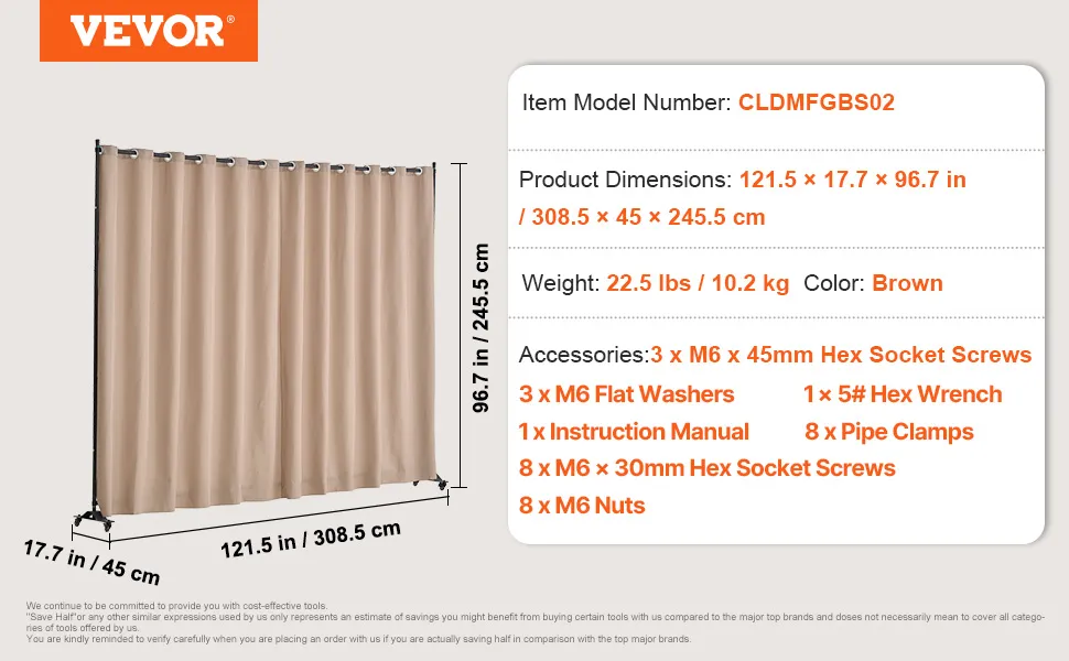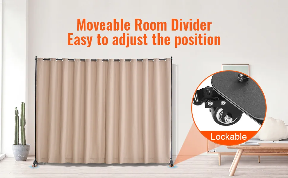 Flexibel & mobil: Ausgestattet mit vier Universalrädern, darunter zwei feststellbare und zwei bewegliche, lässt sich unser Vorhangteilerständer zur Raumtrennung leicht an jeden gewünschten Ort bewegen. Sie können die Position des Teilers mit den flexiblen Rädern bequem an Ihre Bedürfnisse anpassen.