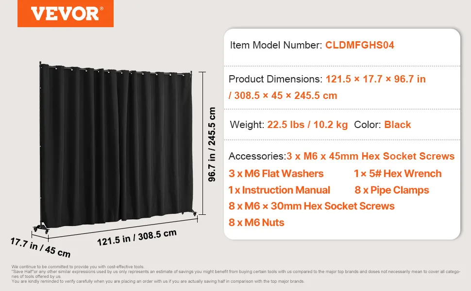 Flexibel & mobil: Ausgestattet mit vier Universalrädern, darunter zwei feststellbare und zwei bewegliche, lässt sich unser Vorhangteilerständer zur Raumtrennung leicht an jeden gewünschten Ort bewegen. Sie können die Position des Teilers mit den flexiblen Rädern bequem an Ihre Bedürfnisse anpassen.