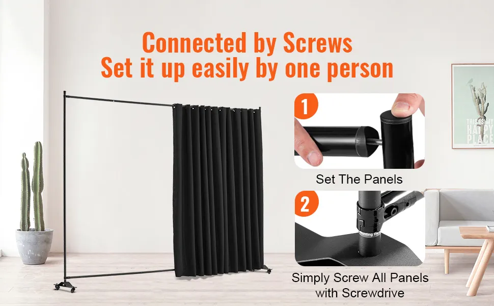 Problemlose Montage: Unser tragbare Raumteiler kann mit Schrauben zusammengebaut werden, sodass eine Person sie ganz einfach zusammenbauen kann, indem sie den Anweisungen im Handbuch folgt. Wenn Sie eine effizientere Montage wünschen, wird empfohlen, Elektrowerkzeuge für die Montage zu verwenden. Bitte beachten Sie, dass wir aufgrund des Stoffmaterials empfehlen, den Stoff vor der Montage zu bügeln. Wenn Sie Fragen haben, zögern Sie nicht, uns zu kontaktieren.