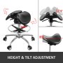 Der Sattelhocker verfügt über eine Gashöhenverstellung mit einem Höhenbereich von 50cm bis 70cm und einen 4-Wege-Neigungsverstellmechanismus für maximale Vielseitigkeit.
