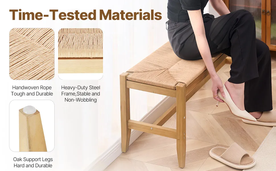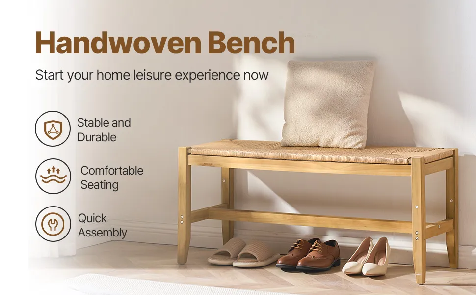 Qualität & Stabilität: Diese Rattanbank für den Eingangsbereich bietet Qualität und Stabilität mit ihrer handgewebten Seiloberfläche, die ein Durchhängen verhindert und dafür sorgt, dass Sie stundenlang bequem sitzen können. Sie bleibt im Winter kühl und im Sommer luftig! Der Massivholzrahmen und die Beine aus poliertem Naturkieferholz machen diese Bank nicht nur schön, sondern auch langlebig.