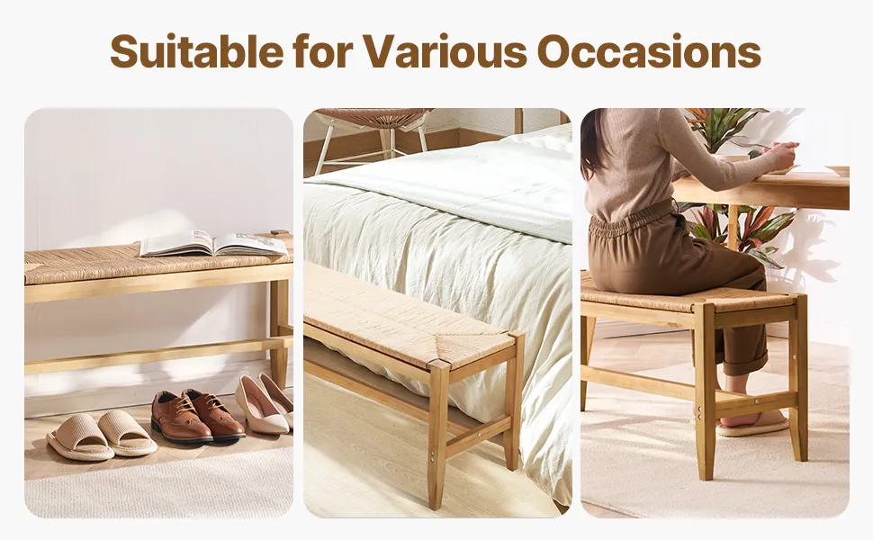 Ideal für verschiedene Anlässe: Diese Korbbank ist wunderschön in Schlafzimmern, Eingangsbereichen oder Essbereichen. Verwenden Sie sie als Schuhwechselstation für Gäste, als gemütlichen Sitz am Fußende Ihres Bettes oder als Essbank für Familientreffen. Es ist die lustige, funktionale Ergänzung, auf die Ihr Zuhause gewartet hat!