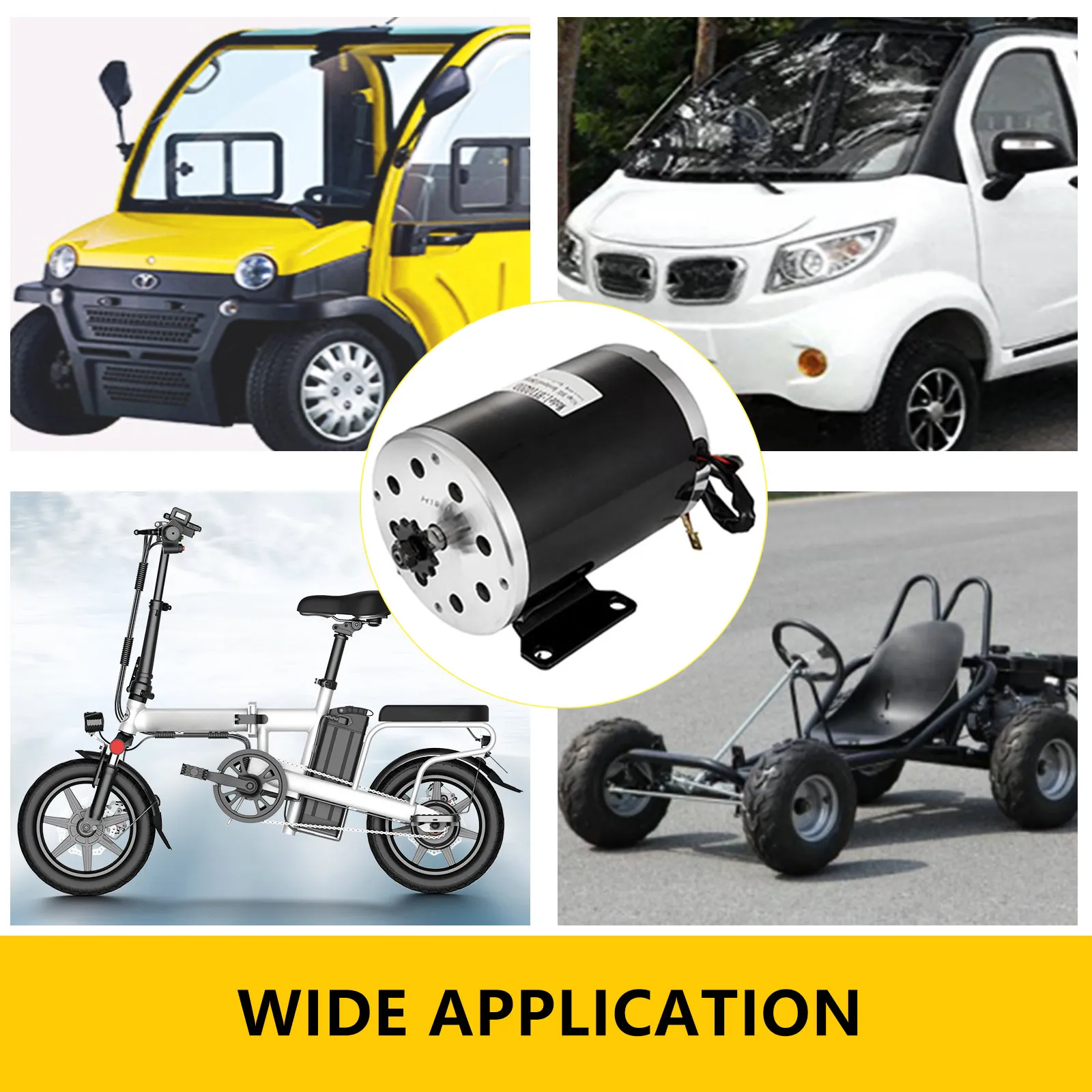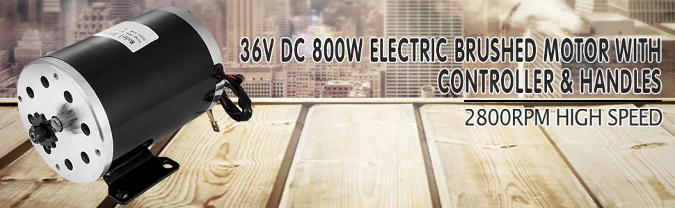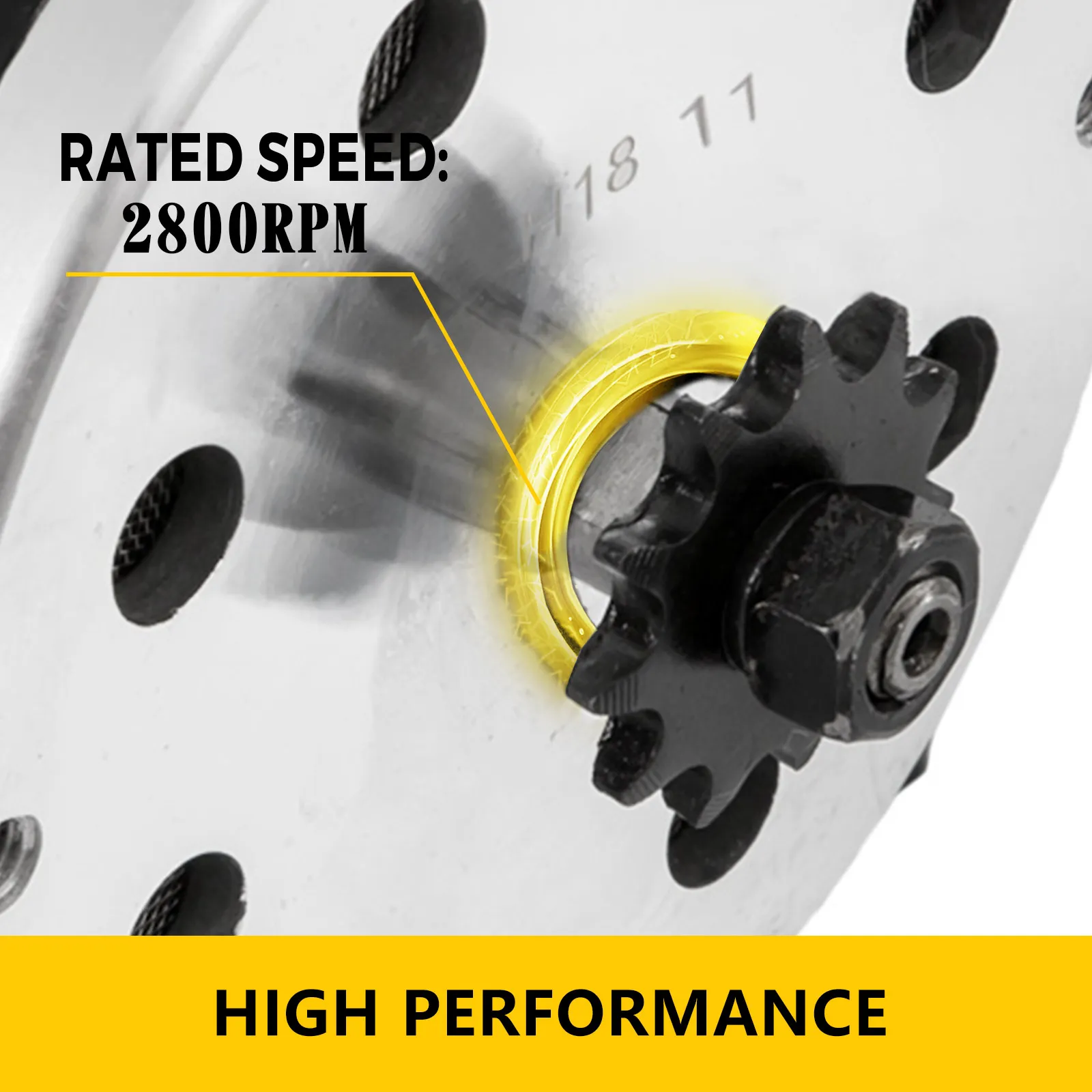 Dieser leistungsstarke Elektromotor verfügt über 36 Volt Gleichstrom, eine Leistung von 800 Watt, eine Nenndrehzahl von 2800 U / min, einen Nennstrom von 28,5 Amp. Und einen Kettenantrieb (Kettenrad mit 11 Zähnen) Go-Karts, Fahrräder usw.