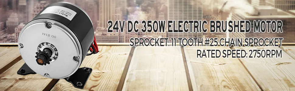 Dieser leistungsstarke Elektromotor verfügt über 24 Volt Gleichstrom, Leistung 350 Watt, Nenndrehzahl 2750 U / min, Nennstrom 18,7 Ampere, Kettenantrieb (11 Zähne Ritzel) # 25 Kette ist der ideale Elektromotor für große Roller, Fahrräder und Dreirad, Mini Fahrräder usw.