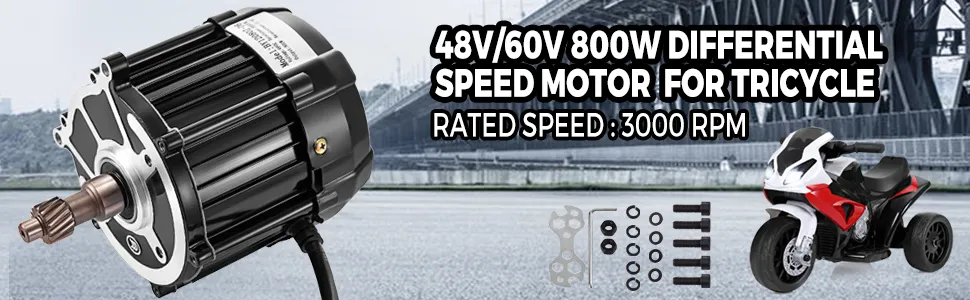 【DIFFERENZDREHZAHLMOTOR】 - Dieser Hochleistungs-Differenzdrehzahlmotor für ein elektrisches Dreirad ist vom Benutzer einstellbar und kann von 48 V auf 60 V selbst aufgerüstet werden, um Ihren Anforderungen gerecht zu werden. Leistung: 800 W. Nenndrehzahl: 3000 U / min. Geschwindigkeit: 25-30 km / h.