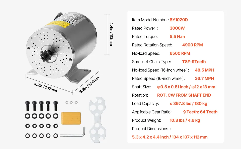 Leistungsstarke, effiziente Leistung: Der bürstenlose Gleichstrommotor von VEVOR liefert 3000 W Ausgangsleistung und arbeitet effizient mit einer Umwandlungseffizienz von ≥ 85 %. Dies gewährleistet eine zuverlässige Geschwindigkeit auch auf schwierigem Gelände und einen geringeren Energieverbrauch. Perfekt für Elektrofahrräder, Roller und andere DIY-Elektrofahrzeugprojekte, die eine hohe Leistung erfordern