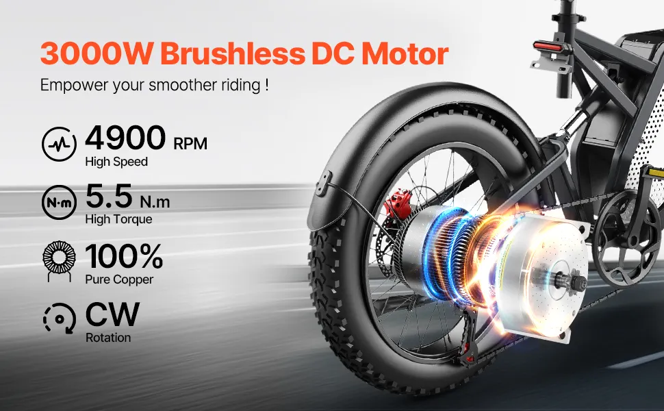 Rüsten Sie Ihr Fahrrad selbstbewusst auf und erleben Sie mehr Leistung, Zuverlässigkeit und Fahrspaß mit dem bürstenlosen 72-V-3000-W-Gleichstrommotor, dem beeindruckenden Nenndrehmoment von 5,5 Nm, hoher Geschwindigkeit und CW-Richtungssteuerung.